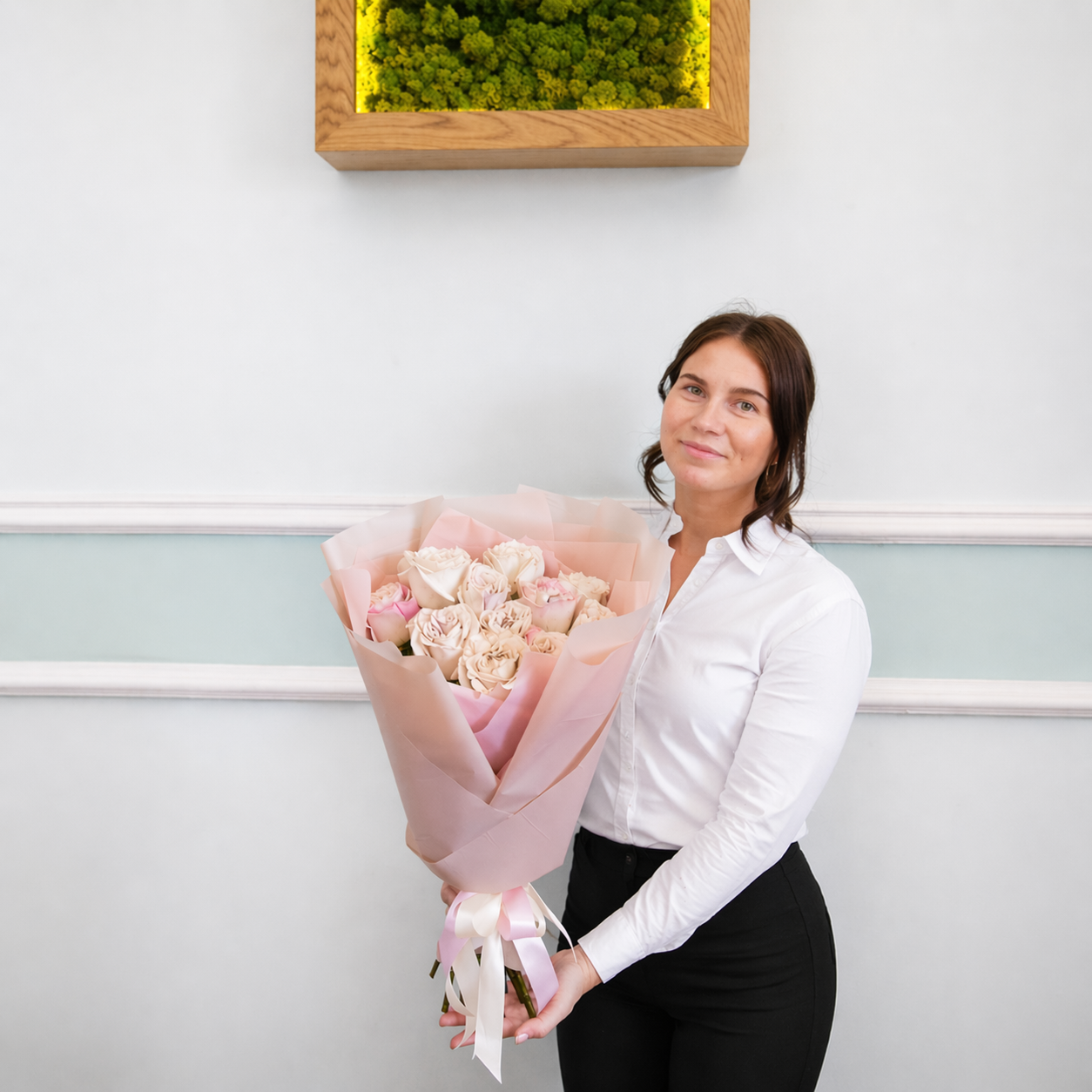 Если растение было на холоде, стоит дать ему отогреться: оставьте букет на столе в комнате на 10–15 минут. Идеальная вода для пионовидных роз — дождевая, которую прокипятили и дали отстояться сутки, или бутилированная. Воду из-под крана лучше не использовать.