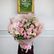 Букет собран из 15 розовых тюльпанов Foxtrot, пионовидных роз Pink Ohara и гортензии. Пионовидные розы относятся к ароматным сортам: ценятся за запах и многослойный бутон, но живут меньше классических — в среднем 3–5 дней. Это норма для всех душистых пионовидных роз. Тюльпаны продолжают расти в вазе и реагируют на свет. Гортензия чувствительна к уровню воды и при регулярном увлажнении сохраняет декоративность до 7 дней. Для продления жизни гортензии — необходимо регулярно опрыскивать холодной водой шапку цветка.