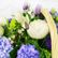 Корзина цветов с тюльпанами, гиацинтами, клематис и вибурнум